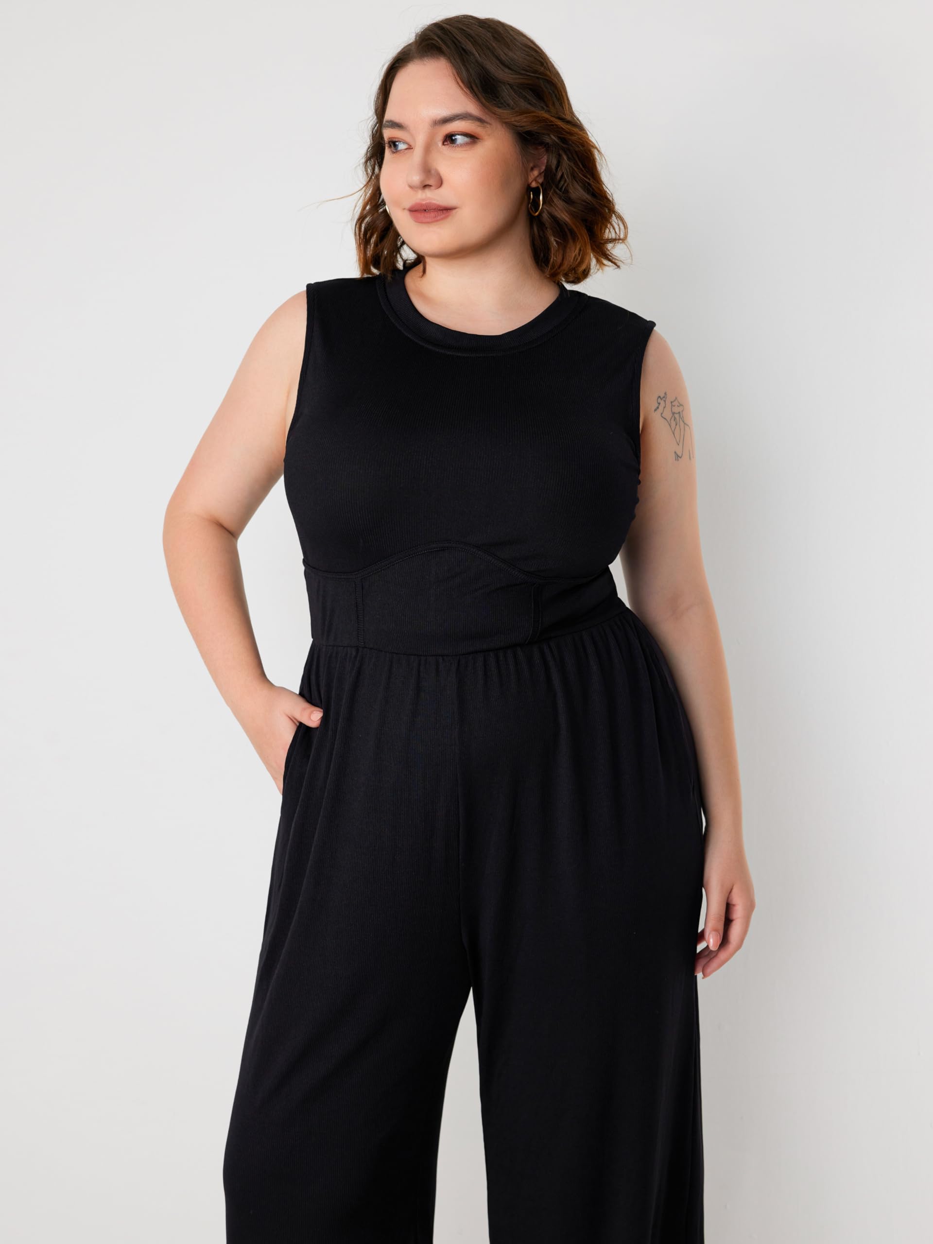 CIDER Plus Size Jumpsuits For Curvy Women Crew Neck Sleeveless Elegant Wide Leg Jumpsuits Dressy Casual Summer Outfits